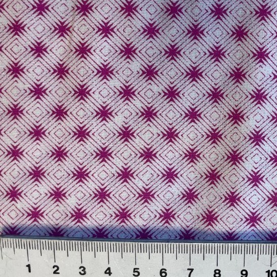Bedrukte katoenen poplin wit met grafisch roze motiefje.