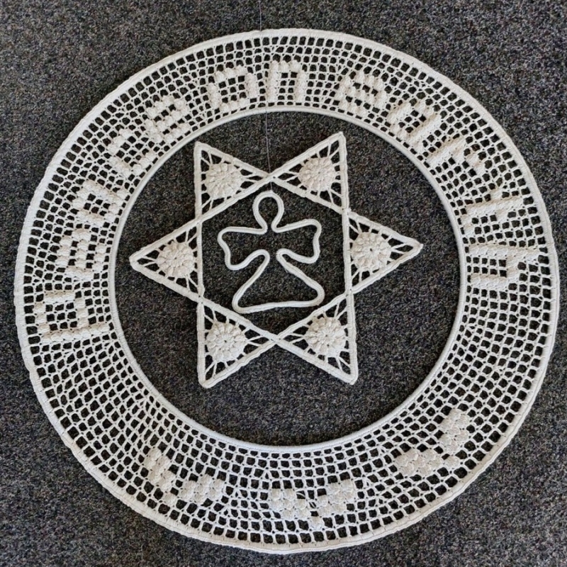 Dit haakwerk ig geboren uit verlangen naar vrede, met onszelf en met elkaar. Het zet ons stil bij dit verlangen en mag straks pronken in ons huis.