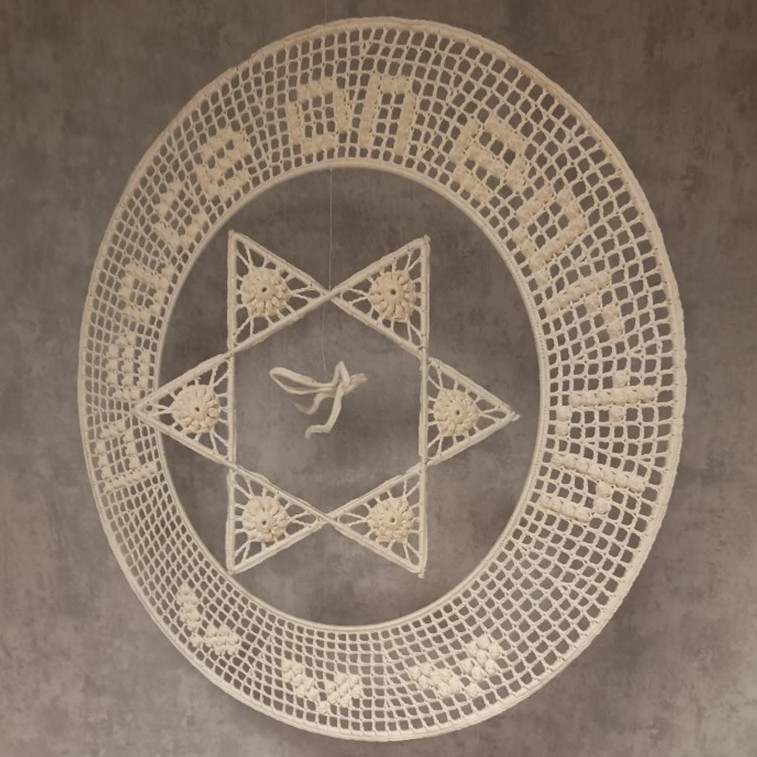 Dit haakwerk ig geboren uit verlangen naar vrede, met onszelf en met elkaar. Het zet ons stil bij dit verlangen en mag straks pronken in ons huis.