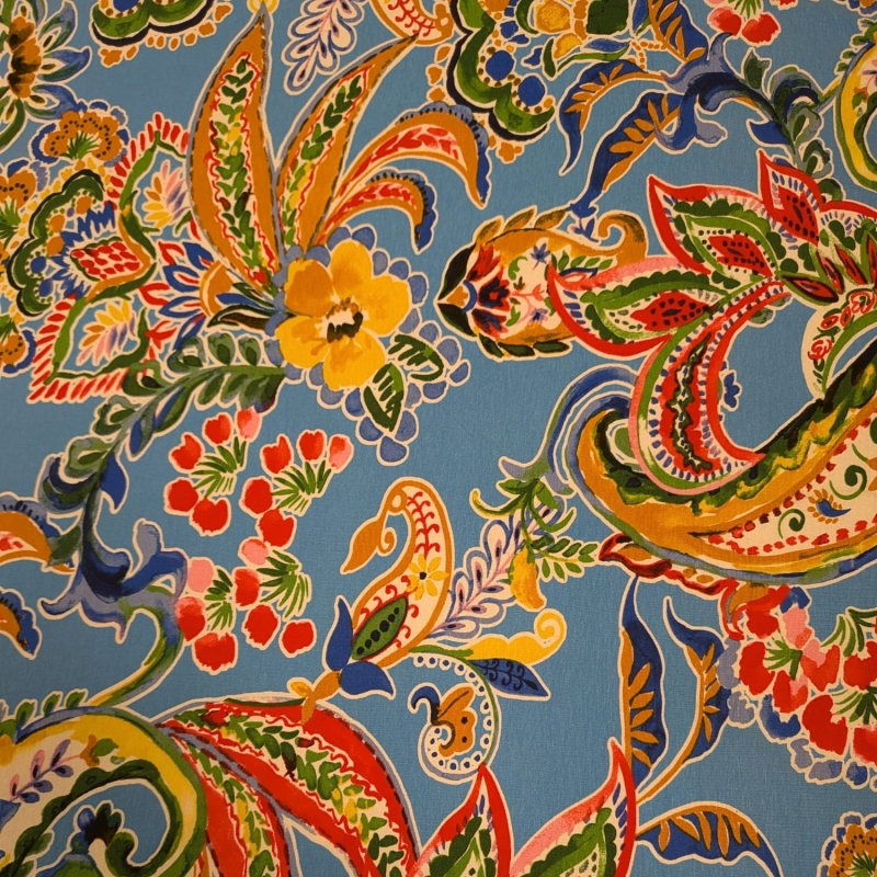 Blauwe viscose tricot met bloemen
